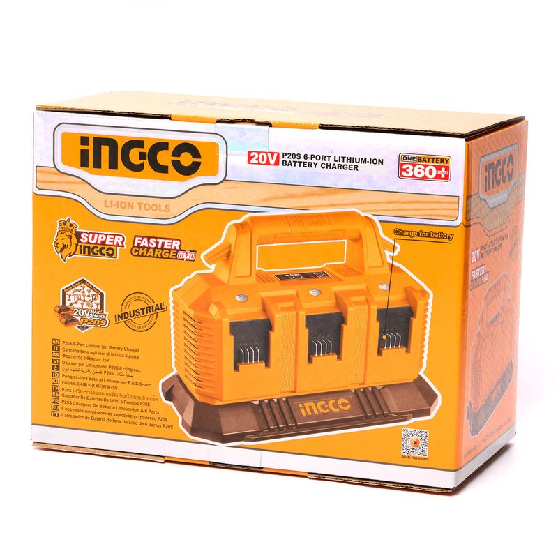 Carregador de Bateria INGCO 6 Portas 20V P20S - Organização e Produtividade