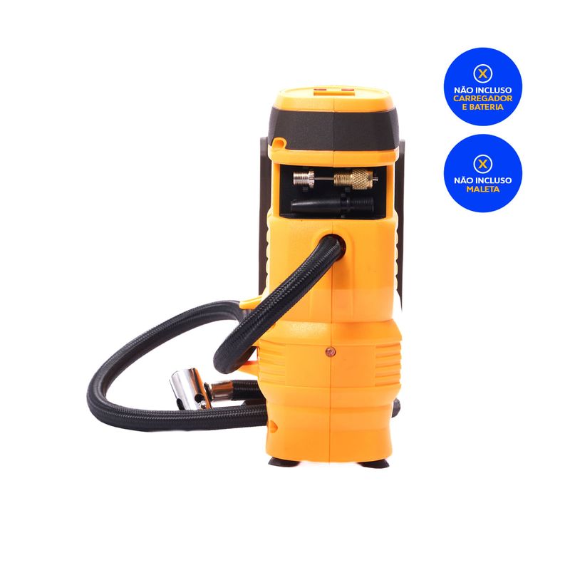 pressão máxima de 160 PSI, garantindo inflação rápida, prática e segura para pneus e infláveis.