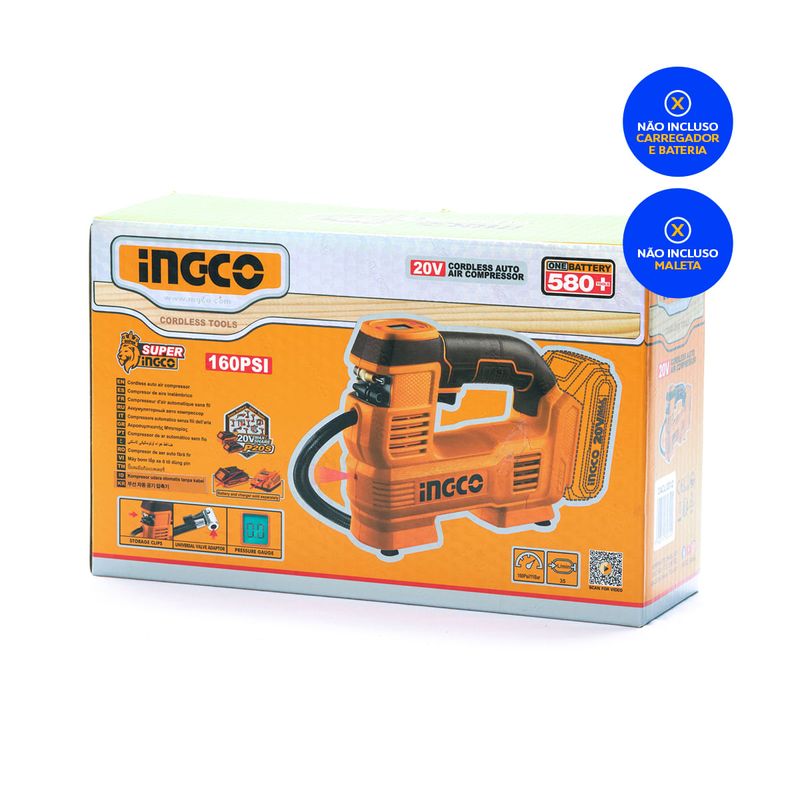 Compressor Automotivo INGCO 160 PSI 20V P20S - Potência e Mobilidade