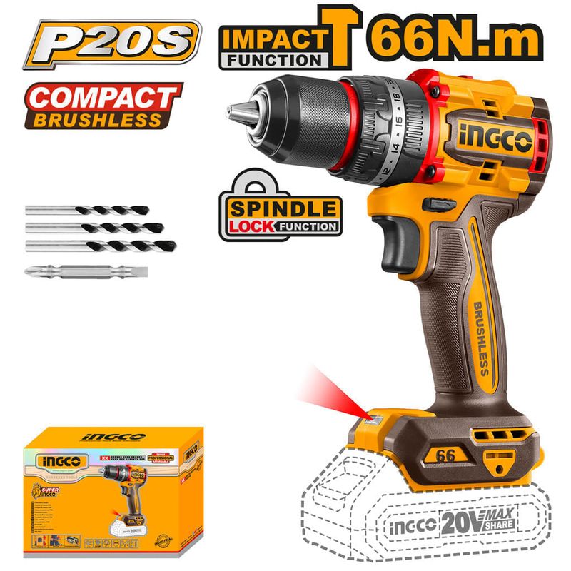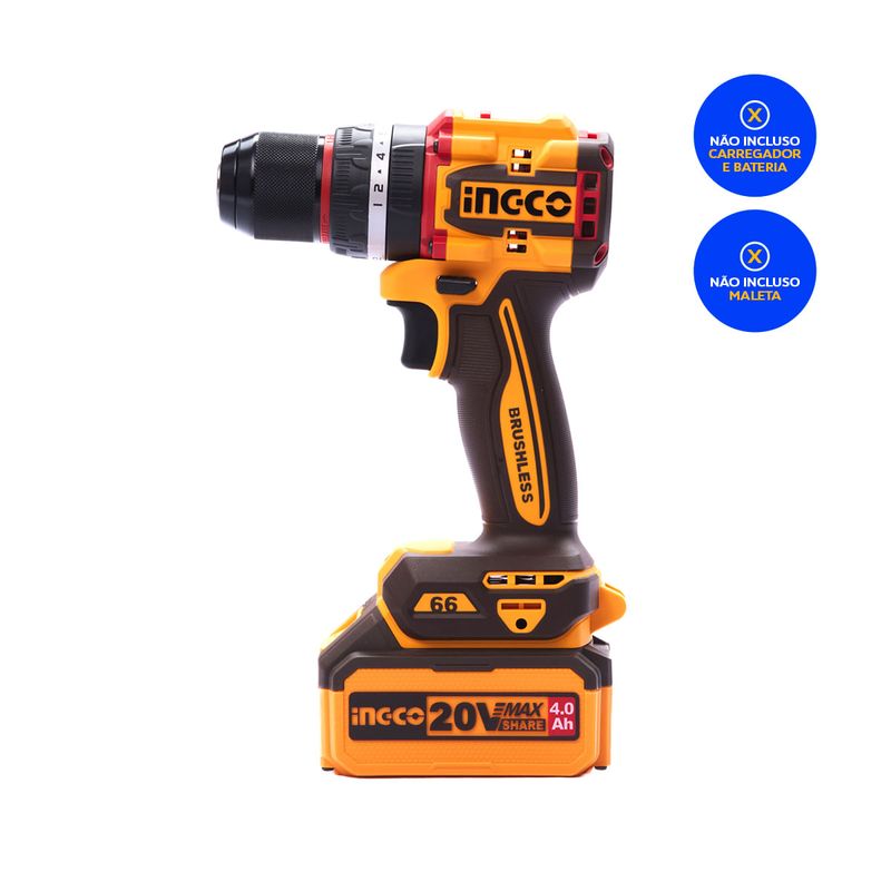 Parafusadeira e Furadeira INGCO 66Nm BL 20V P20S - Potência e Precisão Profissional