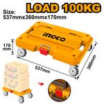 Com plataforma de 537 x 360mm e altura total de 170mm, a base possui rodízios de 10cm fabricados em PP + PVC, garantindo movimentação suave, silenciosa e segura mesmo com carga total. Compatível com as Caixas Empilháveis INGCO de 40cm (PBXS101) e 48cm (PBXS102), permite montar um sistema móvel eficiente para uso profissional ou doméstico.