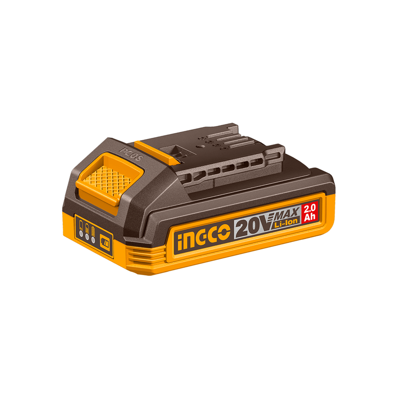 Bateria INGCO Íon Lítio 2.0Ah 20V oferece alimentação eficiente e estável para ferramentas da linha P20S, garantindo autonomia adequada e praticidade no uso profissional ou doméstico.