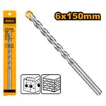 Broca para Alvenaria (Multimaterial) Ingco 6 x 150mm é utilizada para perfuração em tijolos, blocos de concreto e outros materiais de alvenaria. Sua ponta em metal duro proporciona resistência e maior vida útil, garantindo cortes limpos e eficientes.