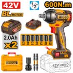 Chave de Impacto Brushless 42V INGCO entrega potência robusta e alto torque de até 600Nm, ideal para serviços exigentes em montagem e manutenção mecânica.