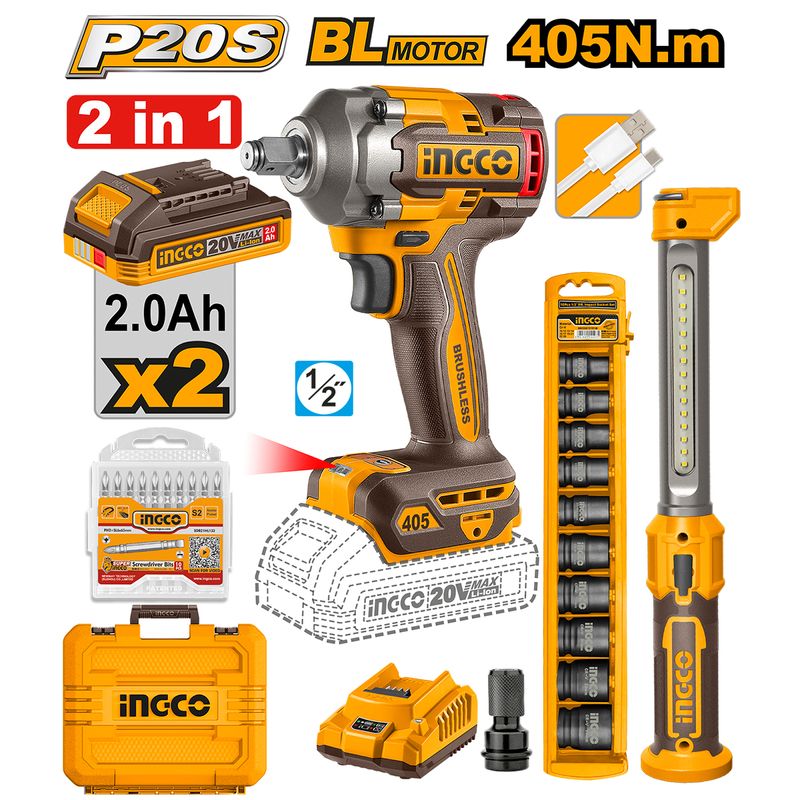 Combo Chave de Impacto INGCO 20V 405Nm – Potência e Versatilidade em um Único Kit