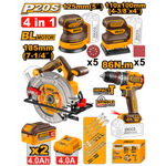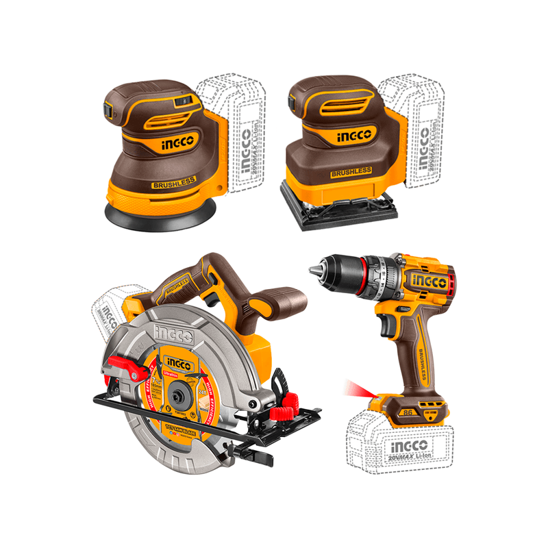 Combo INGCO Parafusadeira, Serra Circular, Lixadeira e Lixadeira Rotativa Bateria 20V P20S