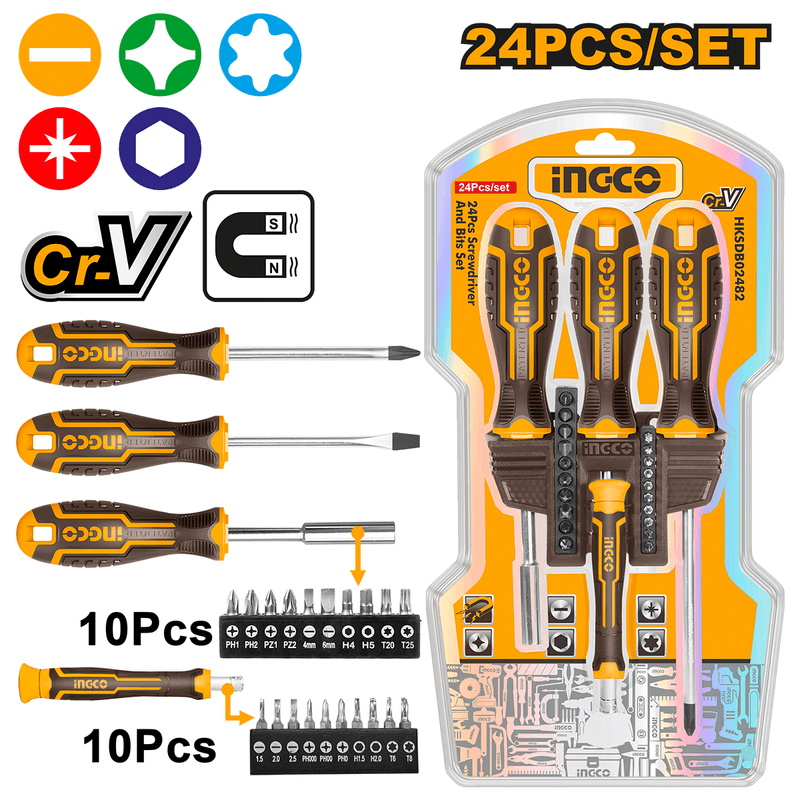 Jogo De Chaves INGCO Fenda, Philips e Bits De Precisão 24 Peças
