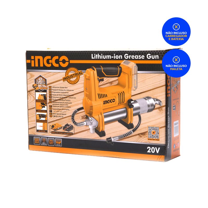 Engraxadeira INGCO 690Bar (10.000Psi) à Bateria 20V - Linha P20S