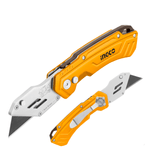 Estilete Dobrável INGCO combina praticidade, resistência e segurança. Seu corpo em alumínio oferece leveza e durabilidade, enquanto as