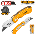 Estilete Dobrável INGCO em Alumínio – Com 6 Lâminas Trapezoidais 61×19 mm