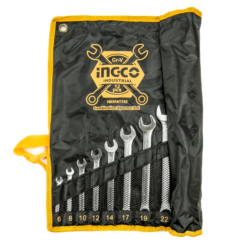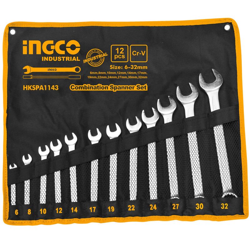 Jogo de Chaves de Porca Abertura Fixa INGCO 12 Peças - Ampla Variedade de Medidas
