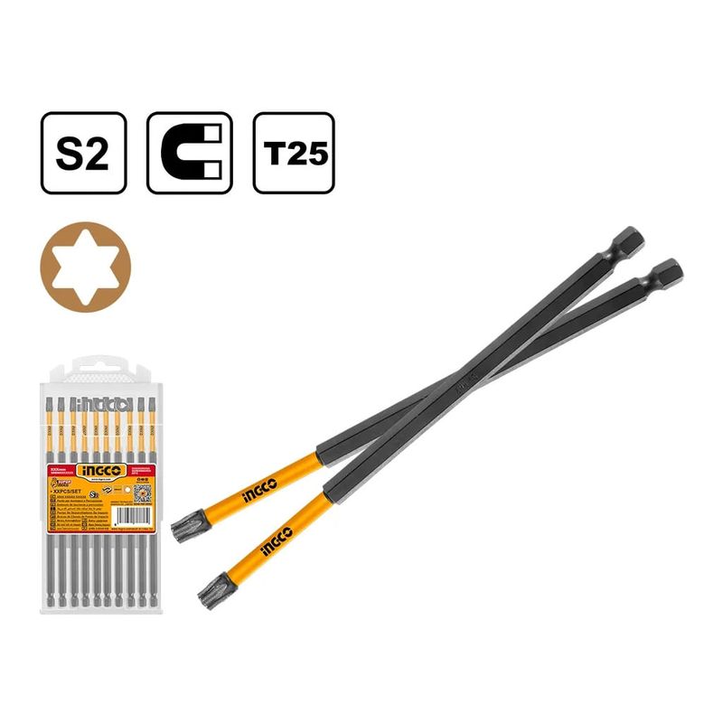 O Jogo de Bits de Torção INGCO foi desenvolvido para oferecer máxima durabilidade e desempenho. Com 10 unidades Torx T25 de 150 mm, são ideais para trabalhos com alto torque, reduzindo o risco de desgaste ou quebra. Acompanha estojo organizador prático e resistente, garantindo segurança no transporte e facilidade no uso profissional ou doméstico.