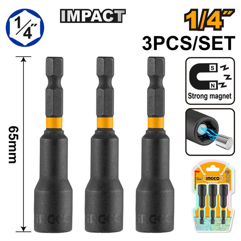 - 3 Soquetes tipo canhão magnéticos INGCO 1/4"