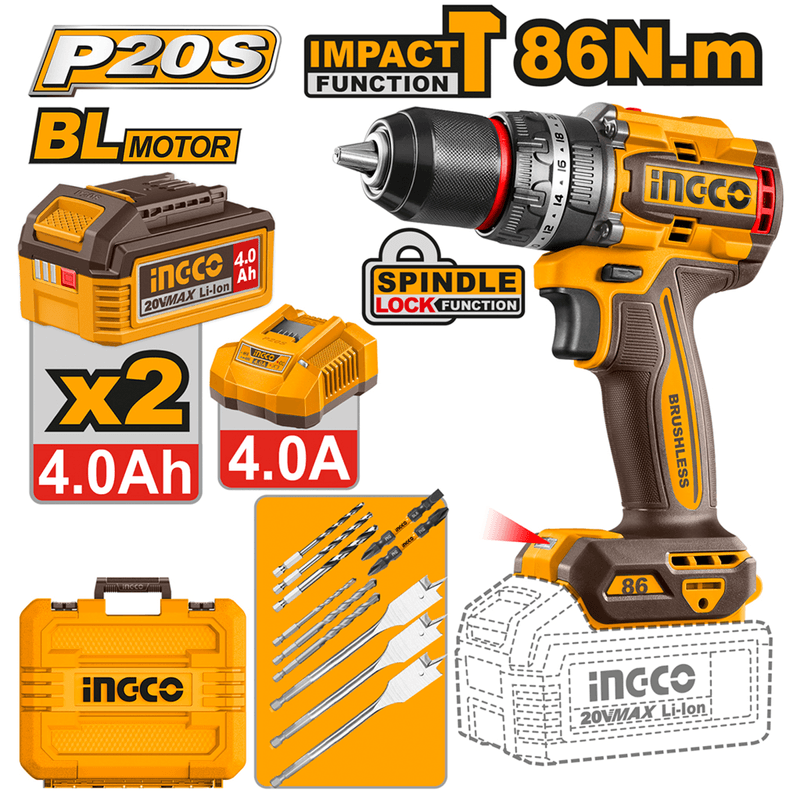 Parafusadeira Furadeira INGCO Bl 86Nm 1/2" Bateria 20V P20S