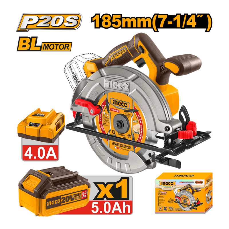 Serra Circular INGCO 20V BL 7.1/4” – Potência e Precisão Sem Fio