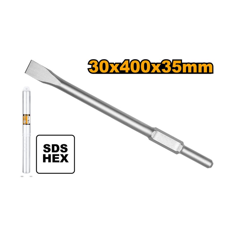Fabricada em aço de alta durabilidade, possui encaixe HEX (hexagonal) compatível com os modelos de marteletes e demolidores INGCO PDB17008 e PDB17018, garantindo firmeza e segurança no uso contínuo.